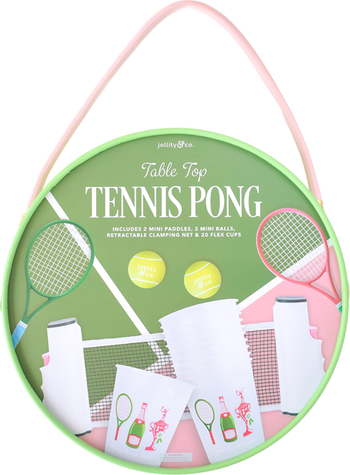 Game. Set. Sip! Tennis Pong takes your party game to center court with a playful twist on the classic. Serve up some friendly competition at your next gathering — perfect for backyard BBQs, birthday bashes, or sipping and scoring with your best doubles partner. Let the rally begin!