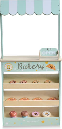 Your little pastry chef is ready to open their own patisserie as they serve up fun with this bakery-stand playset complete with treats, shelves and a rotating sign.