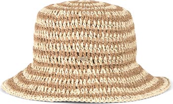 Bring festival-inspired style to your look with this packable straw bucket hat that's crocheted in a breezy open weave.