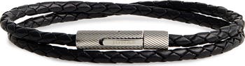Finely engraved hardware touches up a charming American bracelet fashioned from rich leather.