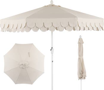 Stir up some midcentury glamor with this classic scalloped umbrella. It features a sturdy aluminum frame covered in durable outdoor canvas, and an auto-tilt mechanism. The double-scalloped edge makes this umbrella chic enough for cocktails around the pool or an outdoor dinner party.