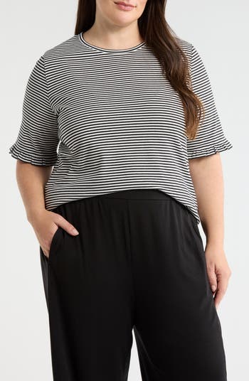 A frill-finished sleeve and cheerful stripes make this the staple stretch-cotton top you'll be happy to wear on repeat.
