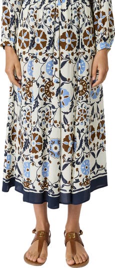 Retro chic spirit for this skirt adorned with a vegetal print, crafted in a fluid material. Its flared shape offers movement and lightness.