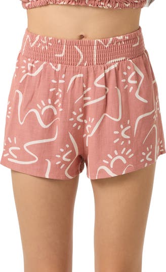 An allover print energizes these sunny-day shorts made with a comfy elastic waist and cut in a lightweight linen-kissed blend.