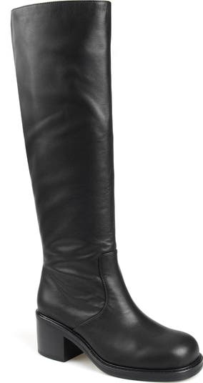 A block heel brings extra lift to this streamlined, modern boot fashioned from smooth leather.