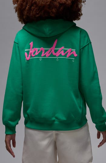 Puff paint logos put a retro spin on this sporty hoodie made from the label's signature cotton-blend fleece.