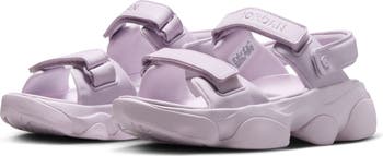 Cushy and versatile, this sandal topped with soft leather features a chunky, sculpted sole and Jordan detailing popping in golden shimmer.