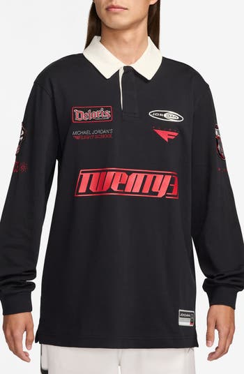Jordan-inspired logos and patches bring game-winning energy to a rugby shirt that's made of soft cotton and sized with plenty of room to play or relax.