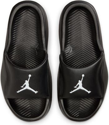 A curvy, echelon-textured footbed gives your kid a secure fit in this water-friendly sport slide set on cushy foam that puts comfort under every step. The Jumpman logo and grippy tread make it a great choice for the pool, the beach or just looking sporty on warm, sunny days.