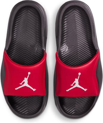 A curvy, echelon-textured footbed gives your kid a secure fit in this water-friendly sport slide set on cushy foam that puts comfort under every step. The Jumpman logo and grippy tread make it a great choice for the pool, the beach or just looking sporty on warm, sunny days.
