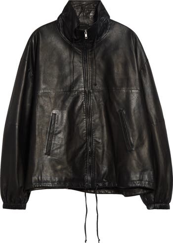 The minimalist Italian label builds out your collection of capsule-wardrobe essentials with this racing-inspired jacket crafted from rich, supple leather.