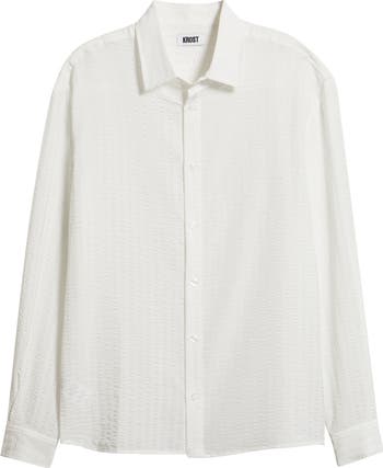 Stripes of perfectly rumpled seersucker made in part with silky lyocell bring sunny-day comfort to a lightweight shirt topped with a smartly pointed collar. Wear it layered, open, tucked or untucked to change up your look without losing your elevated style.