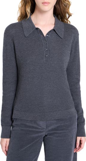 Luxe and leisure meld beautifully in this thermal polo-sweater knit in a waffle texture from pure cashmere.