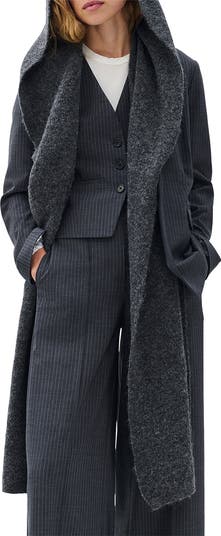 Feel the warmth of this drapey scarf made in a warm woolly blend and fitted with a protective hood.