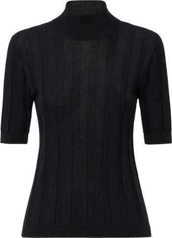 Short sleeve, mock neck ribbed sweater. Made from a light weight Merino wool with eco and responsibly resourced yarns. FREE SHIPPING AND DUTIES PAID IN THE USA AND EUROPE (EU).