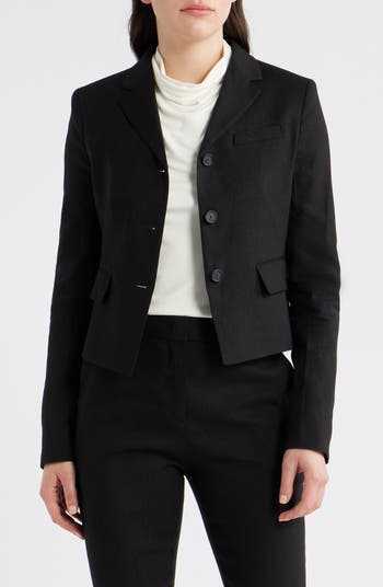 Made from a performance linen blend with a slim silhouette and a waist-skimming length, this expertly tailored jacket will easily finish a workday look or elevate a weekend one.