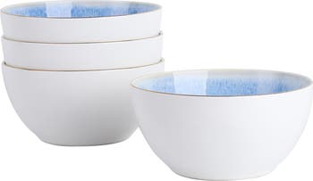 The Stone + Lain Josephine porcelain bowl set set is formal and unique with a stunning reactive glazed speckled interior, making each dish perfectly imperfect. This set includes and white speckled bowls with a white exterior created from the reactive glaze process, making it perfect for everyday-glam dining. The bowls are sized perfectly for soups, salads, and ice cream! These elegant dishes feature a gold rim that is perfect for your formal dinnerware or for elevated everyday-glam meals. This set of 4 can be used to replace broken bowls, or you can use it to add-on to your existing Josephine set if you need extra bowls on hand! Pair this set with your favorite Josephine plates and you are ready to for a fancy and glam dining experience. Josephine is microwave safe for easy reheating. Grab a set today and experience fun dining at home.