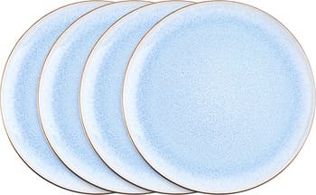 The Stone + Lain Josephine porcelain small plate set set is formal and unique with a stunning reactive glazed speckled interior, making each dish perfectly imperfect. This set includes and white speckled appetizer plates created from the reactive glaze process, making it perfect for everyday-glam dining. The small plates are sized perfectly for appetizers, salads and bread. These elegant dishes feature a gold rim that is perfect for your formal dinnerware or for elevated everyday-glam meals. This set of 4 small plates can be used to replace broken ones, or you can use it to add-on to your existing Josephine set if you need extra plates on hand! Pair this set with your favorite Josephine dinner bowls and large plates and you are ready to for a fancy and glam dining experience. Josephine is microwave safe for easy reheating. Grab a set today and experience fun dining at home.
