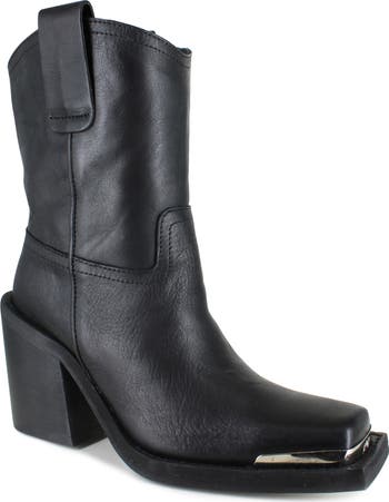 A pronounced square toe and chunky block heel add to the bold style of this Western boot done in supple suede.