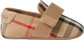 Heritage check and logo lettering bring signature Burberry flair to this adorable crib shoe secured with an adjustable hook-and-loop strap.