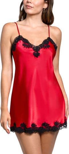Feel glam through your morning and nighttime routines in this romantic lace-trimmed chemise crafted from lustrous stretch satin in a beautiful hue.