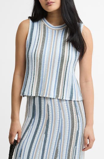 Fine stripes bring visual interest to this knit tank made from a lightweight cotton blend for warm-weather wear.