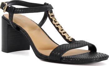 Polished chain links add an extra level of elegance to this ankle-strap sandal lifted by a block heel.