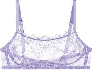 Sheer floral lace and a scalloped neckline enhance the delicateness of this barely there bralette fixed with adjustable straps.