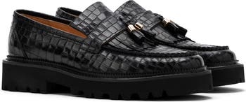 Classic style meets contemporary comfort in this loafer featuring gold trim tassels, croc-embossed calf leather and a memory foam insole.The rubber lug sole ensures durability for any occasion.