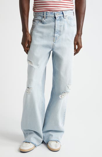 Part of the Italian label's Journey collection, these wide-leg jeans cut from nonstretch denim feature raw edges and major dashes of destruction that lend a worn-in look from day one.