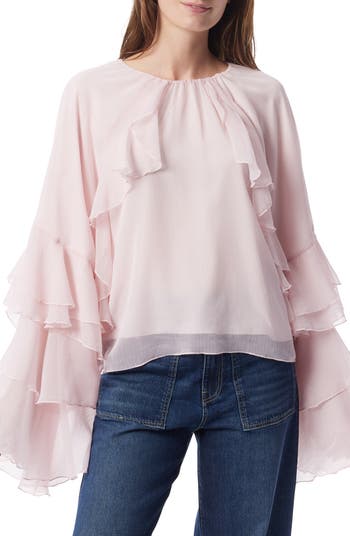 Lusciously layered ruffles add floaty movement to this ethereal top made from airy crinkled chiffon.