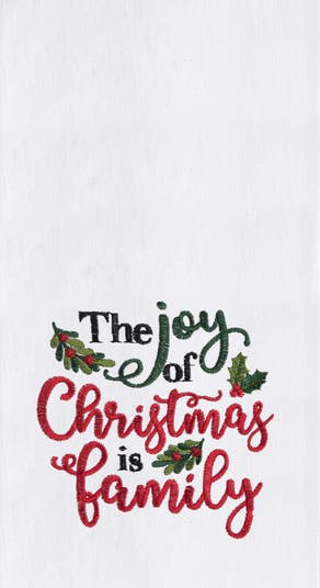 Celebrate with this simply designed Joy of Christmas Family Flour Sack Kitchen Towel, a perfect reminder that family is the most important part of the holiday season. Made of cotton, this towel adds a little festive cheer to the kitchen with its bold red and green text, complete with holly berry icons. It's a wonderful gift for anyone! Stay with and accompany us during our continued home décor magical ventures every season years after years.