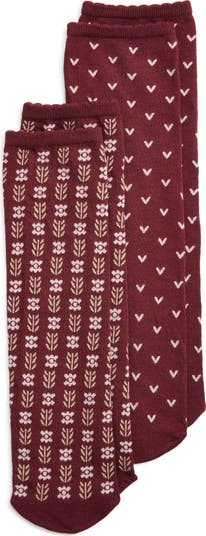 Keep your toes feeling cozy in these supersoft crew socks featuring jacquard blooms and hearts.
