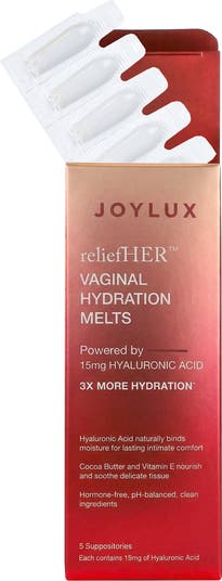 - reliefHER delivers 15 mg of hyaluronic acid in every hydration melt, up to 3x more than many other products, to help enhance moisture and support a soft, comfortable feel. Designed for a richer hydration experience, reliefHER melts provide a silky, nourishing feel that goes beyond surface-level moisturizers. Non-hormonal. Easy to use. Created by women who believe intimate wellness should feel simple, effective, and supportive. Because when your body feels comfortable, you can focus on everything else. BENEFITS: • Richer hydration, right where you want it. reliefHER is designed to deliver a boost of moisture with a silky, nourishing feel. • Feel more comfortable throughout your day. • Enjoy a smoother, more hydrated feel. • Feel more at ease in your body. • Supports confidence in your intimate wellness routine. FEATURES: • Hyaluronic acid is known for its ability to hold up to 1,000x its weight in water. With 15 mg in every melt, reliefHER is designed to provide a richer hydration experience. • Up to 3x more Hyaluronic Acid per melt than many other products • Non-hormonal formula, safe for use with HRT • Helps enhance moisture and softness • Made with clean, plant-based ingredients
