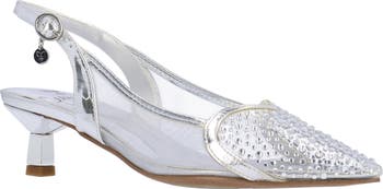 Elevate your special-occasion style with this mesh slingback pump featuring a crystal-spangled pointy toe and comfortable memory foam cushioning.