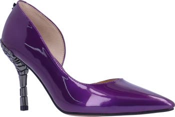 An asymmetric topline and embellished heel further the visual intrigue of this memory foam–cushioned pump in a pointy-toe silhouette.