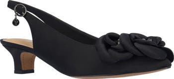 - Adjustable slingback strap with buckle closure