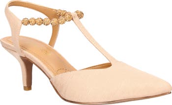 Sparkling embellishments enliven the beaded instep of a pointy-toe pump set on a well-cushioned footbed and tapered heel.