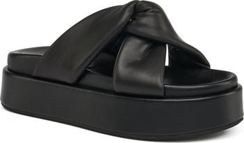 Minimalism meets modern texture in this effortlessly elevated platform slide. The YVETTE is designed with soft, padded leather straps and a sculptural knot detail, this slip-on silhouette brings a refined yet relaxed feel to everyday styling. The clean lines and tonal finish create a polished, versatile look that pairs seamlessly with any wardrobe.