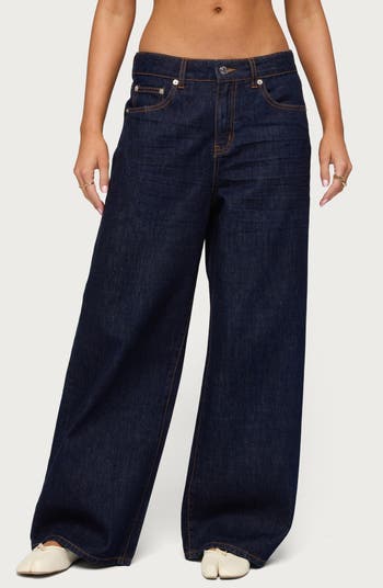 Flaunt a trendy low-rise waist in these slouchy jeans made from nonstretch denim in a dark wash.