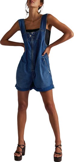 Switch up the look of a childhood fave with these cotton-denim shortalls in a slouchy silhouette for modern insouciant ease.