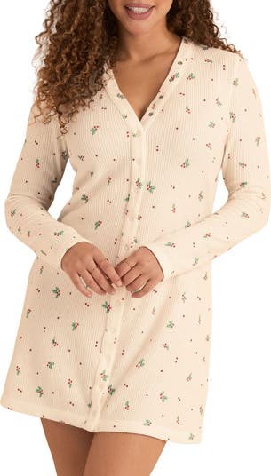 This extra-comfy sleepshirt is made of soft waffle knit fabric to keep you cozy all season long. It features a V-neckline lined with functional snap buttons. (Available in sizes XS-XL.)