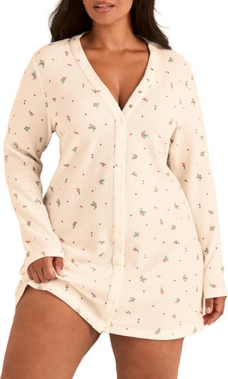This extra-comfy sleepshirt is made of soft waffle knit fabric to keep you cozy all season long. It features a V-neckline lined with functional snap buttons.