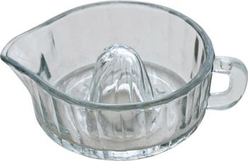 Add timeless function to kitchen routines with this clear Pressed Glass Juicer, designed with a rounded silhouette, molded ridges for efficient citrus extraction, and a side handle for controlled pouring. A nod to classic serveware, it seamlessly blends into Scandinavian, French Country, Farmhouse, Vintage, and Traditional spaces while offering practical charm for morning rituals or weekend baking. Measures 7 inches long, 5.5 inches wide, and 2.25 inches high, holding up to 10 ounces. Everyday tools deserve to be beautiful.