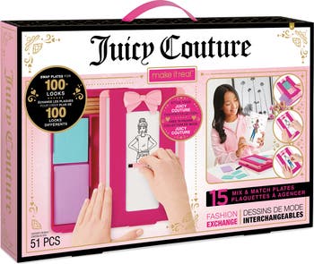 Ever wanted to be a fashion designer for Juicy Couture? Juicy Couture Fashion Exchange makes that possible! Create hundreds of Juicy Couture fashion looks! Use the included rubbing crayon and holder, pencils and built-in textures on the back of the exchangeable plates to allow your fashion designer to easily add color and detail to their one-of-a-kind looks! All plates and drawing materials store neatly in the drawer under the work surface. Portfolio included to store finished masterpieces. ULTIMATE DESIGN KIT Our fashion designer kit comes with everything kids need to start designing like a real Juicy Couture fashion designer! With design plates, drawing sheets, pencils & more, girls can create trendy, one-of-a-kind looks!