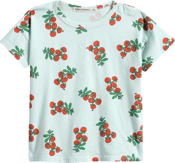Vines of tomatoes brighten this everyday T-shirt cut from pure organic cotton for baby's comfort.