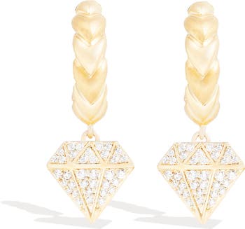 Full of whimsy, the Juju Diamond Charm Huggie features a diamond-shaped charm covered in vibrant diamonds. Anchored by a textural chevron ribbed huggie, these easy-to-wear earrings feature signature ribbing on the back of the charm in gold, providing a charm that is fully designed from front to back.