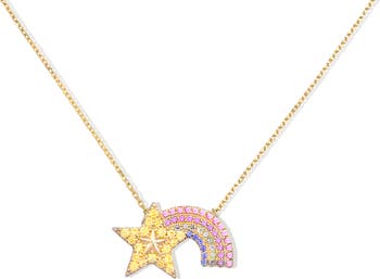 Full of whimsy, the Juju Shooting Star Charm Necklace features a yellow sapphire star trailed by a shimmering rainbow of pink, purple, green, and blue sapphires. Hanging from a 14k gold diamond cut cable chain, and part of the highly collectible Juju Collection, each charm features signature ribbing detail and the same gold design on the back.