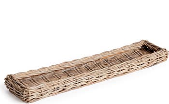 - Made of a large gauge rattan, this extra long tray makes a beautiful centerpiece. Fill it with orbs, faux flower stems or leave it just as is for a clean look.