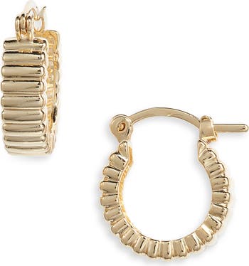 Ridge-rimmed hoops make the most of light play from the 18-karat-gold plating on these simple and chic huggie-hoop earrings.